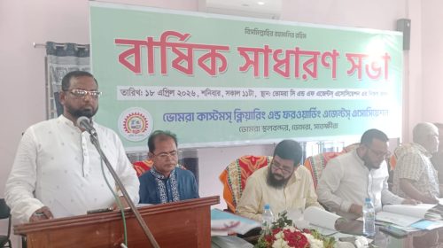 জাকিরুল ইসলাম শরীফ :: ভোমরা কাস্টমস ক্লিয়ারিং এন্ড ফরওয়ার্ডিং এজেন্টস এ্যসোসিয়েশনের (সিএন্ডএফ) বার্ষিক সাধারণ সভা অনুষ্ঠিত হয়েছে। শনিবার (১৮ এপ্রিল) দুপুর ১২টায় ভোমরা সিএন্ডএফ এজেন্টসের নিজস্ব ভবনে সংগঠনের সভাপতি মোঃ আবু হাসানের সভাপতিত্বে ও সাধারণ…