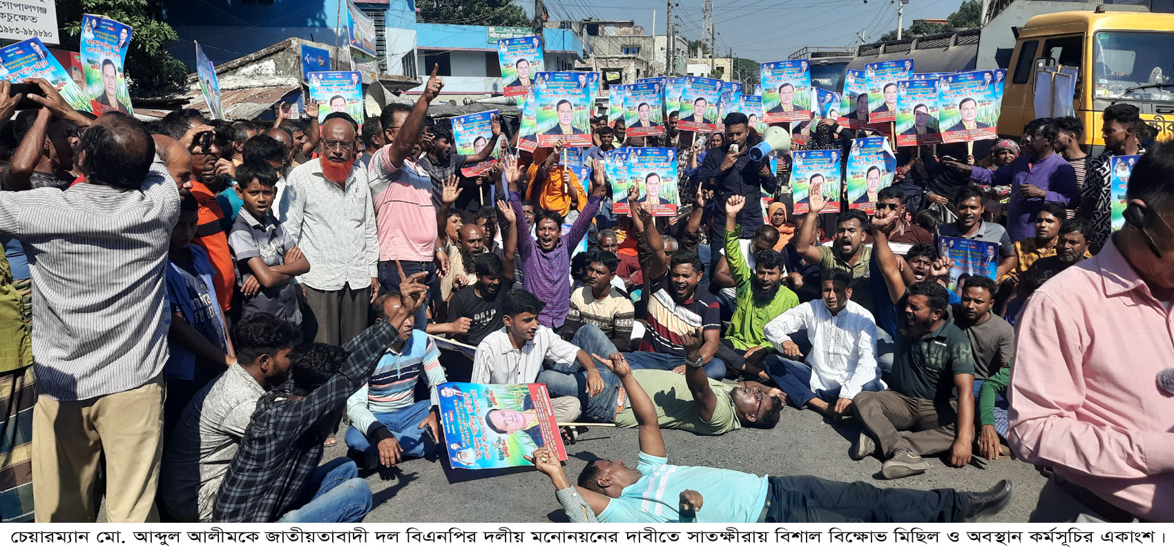 সাতক্ষীরা-২ আসনের সংসদ-সদস্য পদে বিএনপির মনোনয়ন পরিবর্তনের দাবিতে গণমানুষের মানুষের প্রাণপ্রিয় নেতা মো. আব্দুল আলীমের অনুসারীরা সড়ক অবরোধ করে বিক্ষোভ করেছেন। তারা ঘোষিত বিএনপির বহিষ্কৃত নেতা আলহাজ্ব মো. আব্দুর রউফের মনোনয়ন বাতিল করে চেয়ারম্যান মো. আব্দুল আলীমকে দলীয় প্রার্থী ঘোষণার দাবি জানান। চেয়ারম্যান আব্দুল আলীম এর মনোনয়নের দাবিতে সাতক্ষীরা সুন্দরবন টেক্সটাইল মিলস এর সামনে থেকে একটি বিশাল বিক্ষোভ মিছিল ব্যানার প্লাকার্ড সহকারে বের হয়ে সাতক্ষীরা-খুলনা মহাসড়কে শহরের আমতলা মোড়ে অবস্থান কর্মসূচি পালন করে। অবস্থান কর্মসূচিতে বক্তারা বলেন, সাতক্ষীরাবাসীর আশা আকাঙ্খার বিপরীতে দল যে সিদ্ধান্ত নিয়েছে সেখানে দলীয় সমর্থক, ভোটার ও সাধারণ মানুষের নয়নেরমণি যোগ্য প্রার্থী বারবার কারাবরণকারী ও ত্যাগী নেতা চেয়ারম্যান আব্দুল আলিমকে বঞ্চিত করে বিতর্কিত বিএনপি’র বহিষ্কৃত ও বিতর্কিত নেতা মো. আব্দুর রউফকে মনোনয়ন দেওয়া হয়েছে। দলীয় নেতাকর্মী ও সমর্থকদের আশা-আকাঙ্খা নষ্ট করা হয়েছে। সাতক্ষীরা-২আসনে জামায়াতের দাঁড়িপাল্লার বিরুদ্ধে টক্কর দিতে এবং ধানের শীষের বিজয় লাভ করতে চেয়ারম্যান আব্দুল আলীম বিএনপির যোগ্য প্রার্থী। দলীয় সিদ্ধান্ত পরিবর্তন না করলে আগামী ২৩ নভেম্বর কঠোর আন্দোলন ও কর্মসূচির ঘোষণা দেন বক্তারা।