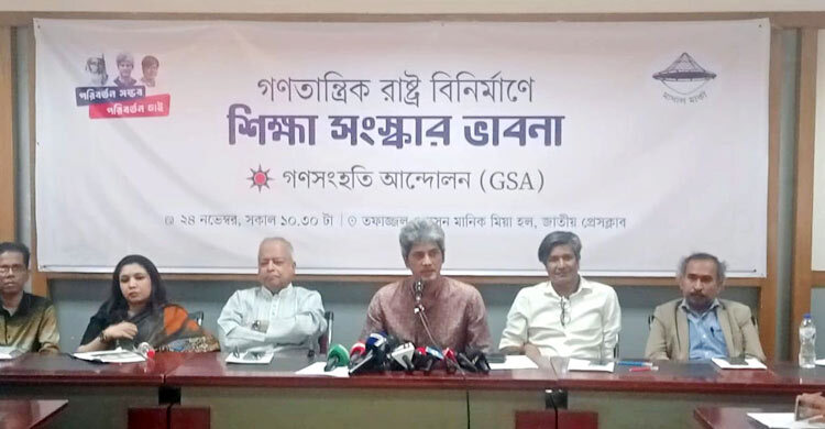 সোমবার (২৪ নভেম্বর) জাতীয় প্রেস ক্লাবের তফাজ্জল হোসেন মানিক মিয়া হলে গণসংহতি আন্দোলন–জিএসএস আয়োজিত ‘গণতান্ত্রিক রাষ্ট্র বিনির্মাণে শিক্ষা সংস্কার ভাবনা’ শীর্ষক মতবিনিময় সভায় তিনি এ মন্তব্য করেন। নির্বাচনী ইশতেহার প্রণয়নের অংশ হিসেবে ‘আপনার মতামত, আমাদের ইশতেহার’ উদ্যোগের ধারাবাহিকতায় এ সভা আয়োজন করা হয়।