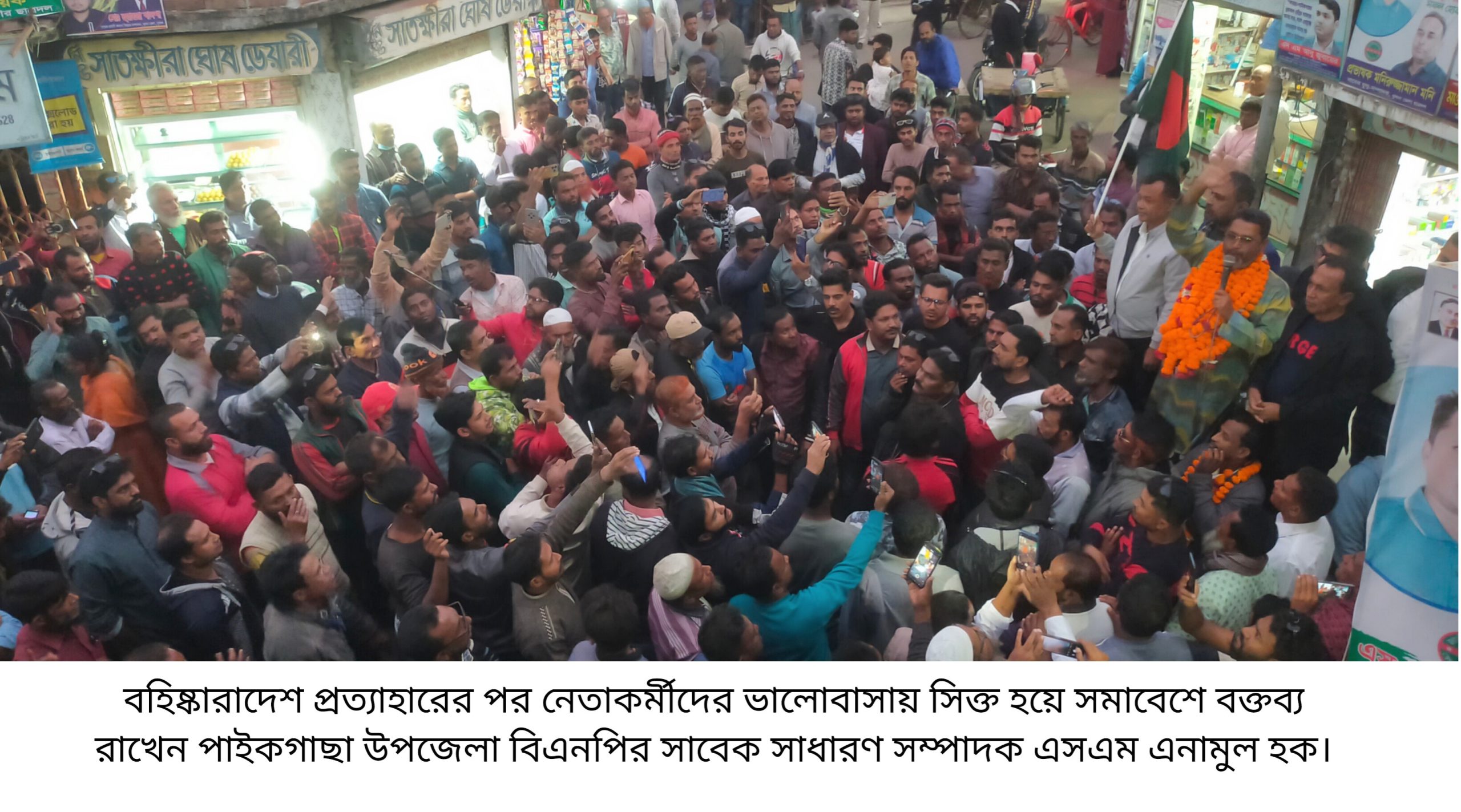 পাইকগাছা ( খুলনা) প্রতিনিধি : বহিষ্কারাদেশ প্রত্যাহারের পর দলীয় নেতাকর্মীদের ভালোবাসায় সিক্ত হয়েছেন পাইকগাছা উপজেলা বিএনপির সাবেক সাধারণ সম্পাদক ও সাবেক ইউপি চেয়ারম্যান এসএম এনামুল হক।