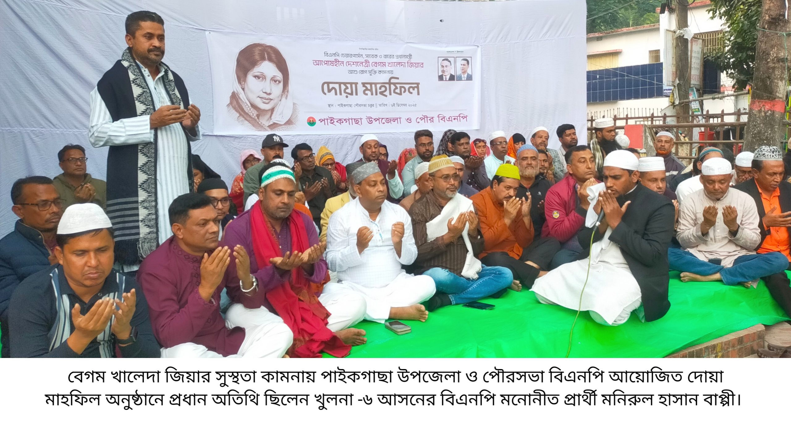 তিনি ৬ ডিসেম্বর শনিবার বিকালে পাইকগাছা পৌরসভা মাঠে বিএনপির চেয়ারপার্সন ও সাবেক প্রধানমন্ত্রী বেগম খালেদা জিয়ার সুস্থতা কামনায় উপজেলা ও পৌরসভা বিএনপি আয়োজিত দোয়া মাহফিল পূর্ব আলোচনা সভায় প্রধান অতিথির বক্তৃতায় এসব কথা বলেন। উপজেলা বিএনপির আহবায়ক ডাঃ আব্দুল মজিদ এর সভাপতিত্বে ও সদস্য সচিব এসএম ইমদাদুলহকের সঞ্চালনায় অনুষ্ঠানে বক্তব্য রাখেন পৌরসভাবি এনপির সভাপতি আসলাম পারভেজ, সাধারণ সম্পাদক কামাল আহমেদ সেলিম নেওয়াজ, জেলা বিএনপি নেতা জিএম আব্দুস সাত্তার, জেলা স্বেচ্ছাসেবক দলের সদস্য সচিব আব্দুল মান্নান মিস্ত্রি, উপজেলা বিএনপির সাবেক সাধারণ সম্পাদক এস এম এনামুলহক, উপজেলা বিএনপি নেতা তৌহিদুজ্জামান মুকুল, আবুল হোসেন, কাজী সাজ্জাদ আহমেদ মানিক, শেখ আেহমেদ লাল, তুষার কানি মন্ডল, আবু তালেব, সরদার ফারুক আহমেদ, এডভোকেট একরামুল হক বিশ্বাস, পৌরসভা বিএনপি নেতা সেলিম রেজালাকি, এস এম মোহরআলী, জেলা স্বেচ্ছাসেবক দলেরযুগ্ম আহবায়ক এডভোকেট এস্কেন্দার, বিএনপি নেতা মোস্তফা মোড়ল, উপজেলা কৃষক দলের সভাপতি মেছের আলী সানা, মহিলা দলের সভাপতি লক্ষীরাণী গোলদার, উপজেলা যুবদলের সদস্য সচিব ইমরান সরদার, যজ্ঞেশ্বর সানা কার্ত্তিক, মোল্লা ইউনুস আলী, মাষ্টার মুজিবুর রহমান, উপজেলা ওলামা দলের সাধারণ সম্পাদক শফিকুল ইসলাম, শেখ রুহুল কুদ্দুস,