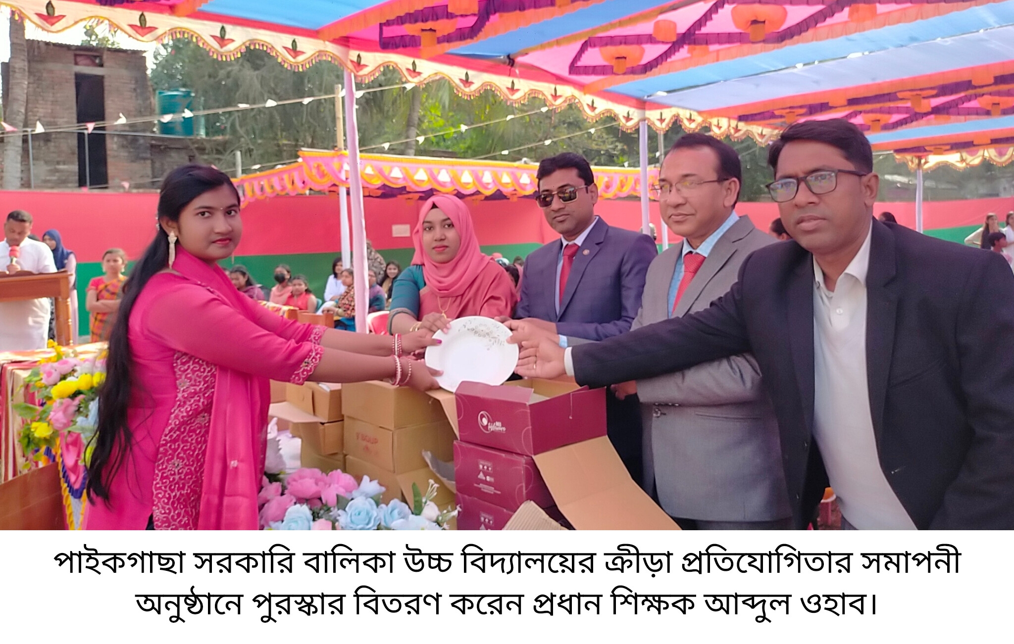 পাইকগাছা (খুলনা) প্রতিনিধি :: পাইকগাছা সরকারি বালিকা উচ্চ বিদ্যালয় আয়োজিত বার্ষিক ক্রীড়া প্রতিযোগিতা, সাংস্কৃতিক অনুষ্ঠান, নবীন বরণ, কৃতী শিক্ষার্থীদের সংবর্ধনা ও পুরস্কার বিতরণী সম্পন্ন। ২২ জানুয়ারি বৃহস্পতিবার প্রতিযোগিতার দ্বিতীয় দিনে দিনভর বিদ্যালয় মাঠে কোরআন ও গীতা পাঠ সহ বিভিন্ন ক্যাটাগরির সাংস্কৃতিক প্রতিযোগিতা ও মনোজ্ঞ সাংস্কৃতিক অনুষ্ঠান অনুষ্ঠিত হয়।