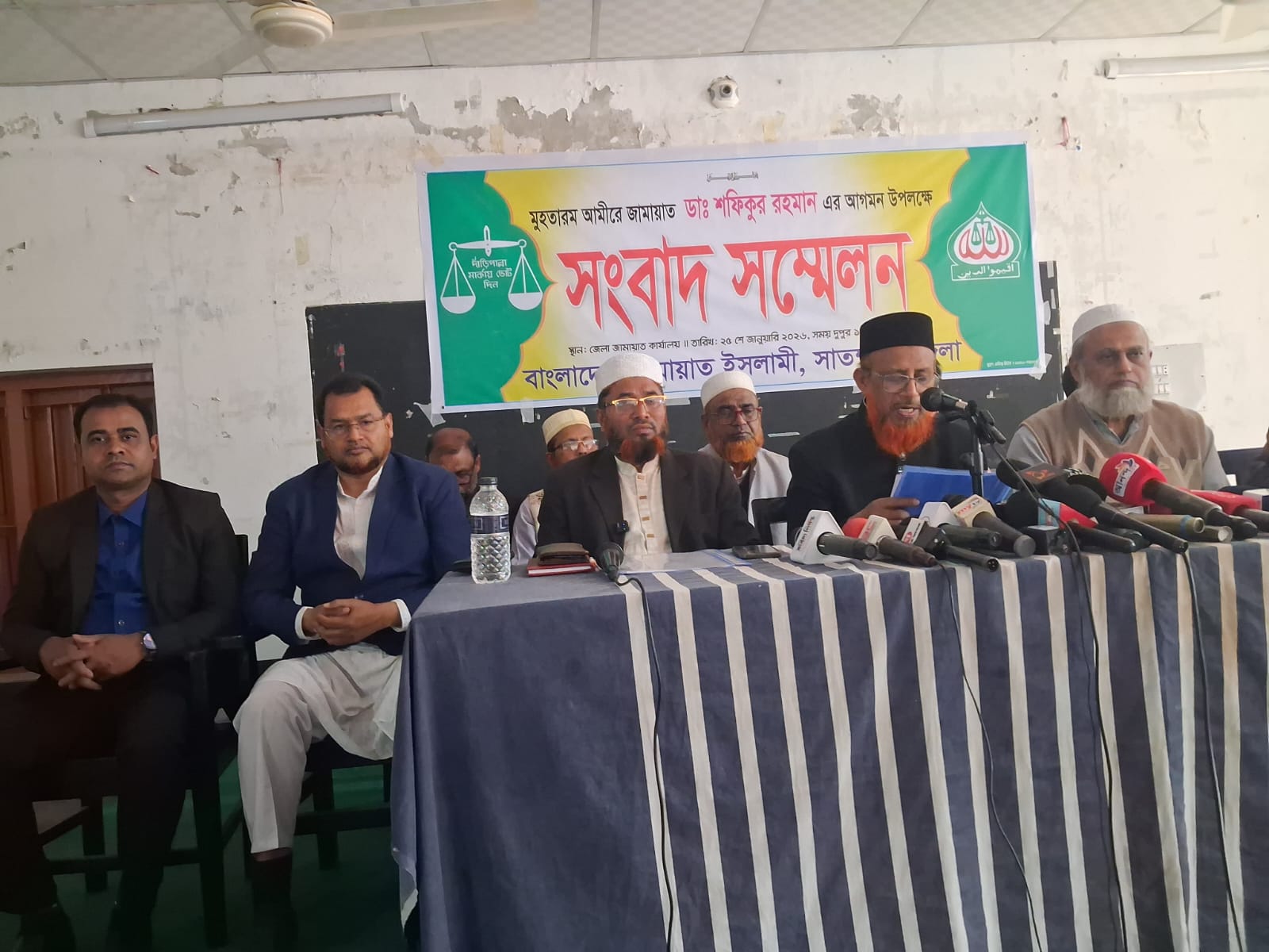 ২৫ জানুয়ারী রবিবার দুপুরে শহরের আল আমিন ট্রাস্টের জামায়াতের নিজস্ব কার্যালয়ে এ সাংবাদিক সম্মেলন অনুষ্ঠিত হয়। এতে উপস্থিত ছিলেন সাতক্ষীরা জেলা জামায়াতের আমীর উপাধ্যক্ষ শহিদুল ইসলাম মুকুল, জেলা নায়েবে আমীর শেখ নূরুল হুদা, জেলা সেক্রেটারি মাওলানা আজিজুর রহমান, সহকারী সেক্রেটারী অধ্যাপক ওমর ফারুক, কর্মপরিষদ সদস্য এড.আজিজুল ইসলাম, অফিস সেক্রেটারী মাওলানা রুলুল আমিন, কর্মপরিষদ সদস্য নজরুল ইসলাম প্রমুখ।